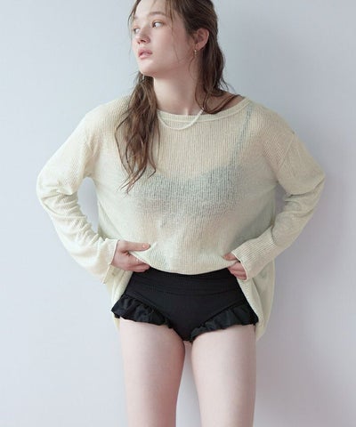 中のビキニもかわいいし、シアートップスのだらんとした丈感がかわいい…!濡れると重いです