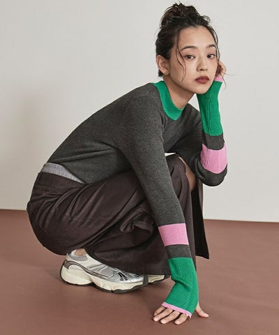 マルチ配色フィンガーリブニット【miette ミエット】【メール便可/100】