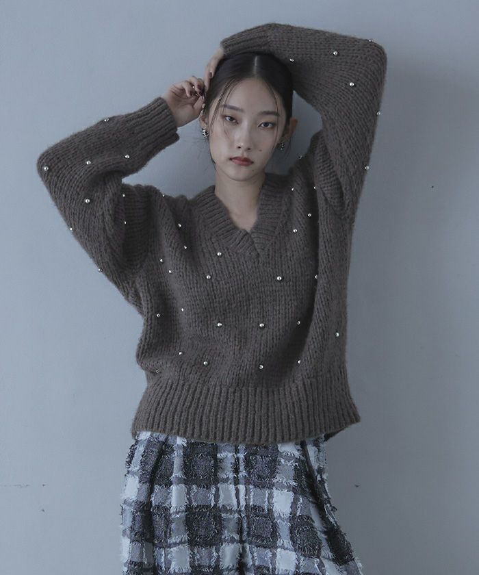 シャギーポケットのアクセントがNICE! 異素材のニットがまた高級感出てて高見えです!