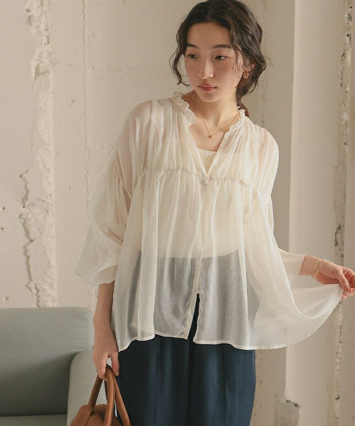 こなれ感があってとっても可愛い 160センチ細身Sサイズ購入 ブラウンを買って良かったので ホワイトも購入 コンパクトな上を着ると めっちゃウエスト細く見えてスタイル良くみえます シワが付きやすいのが残念ですが 生地感&着用感がこれからの時期にピッタリな1枚だと思います -