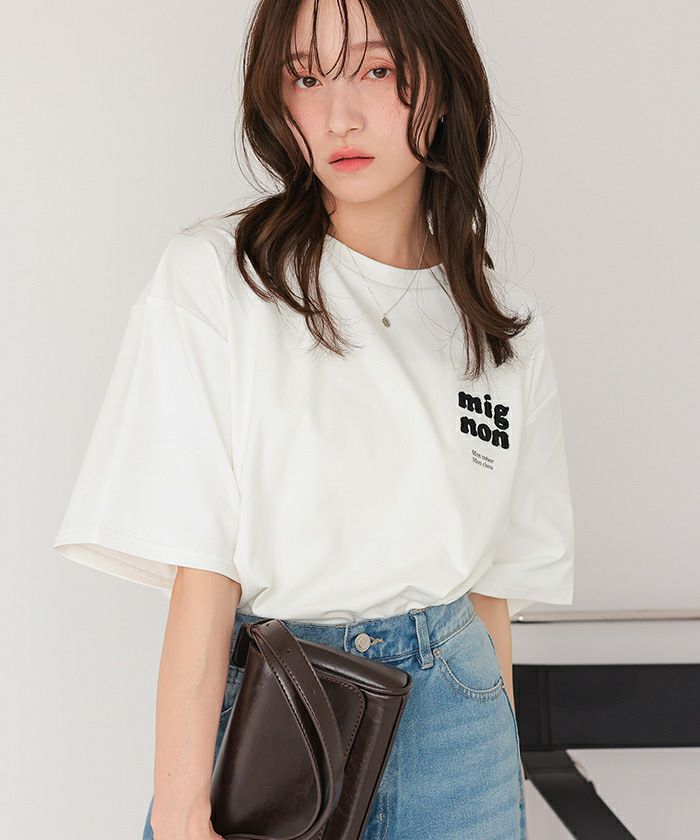 ゆったりサイズのティシャツで袖が肘くらいまであるのがとてもよいです ポコポコとしたロゴもかわいい セールでお得に買えてラッキーでした -