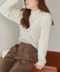 首元までしっかり立ち上がってるからとてもあったかい! ニットの生地感は硬めなのでほんの少しチクチクしますが耐えれる範囲です^ ^ ショート丈なのでハイウェストボトムと◎ -