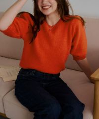 162cm普段LサイズでオレンジMを購入。 思ったよりも厚手でしたが、パフスリーブが可愛くゆったりと着られます。一覧の画像通りのオレンジ色で、真冬は差し色になり気に入りました。 -