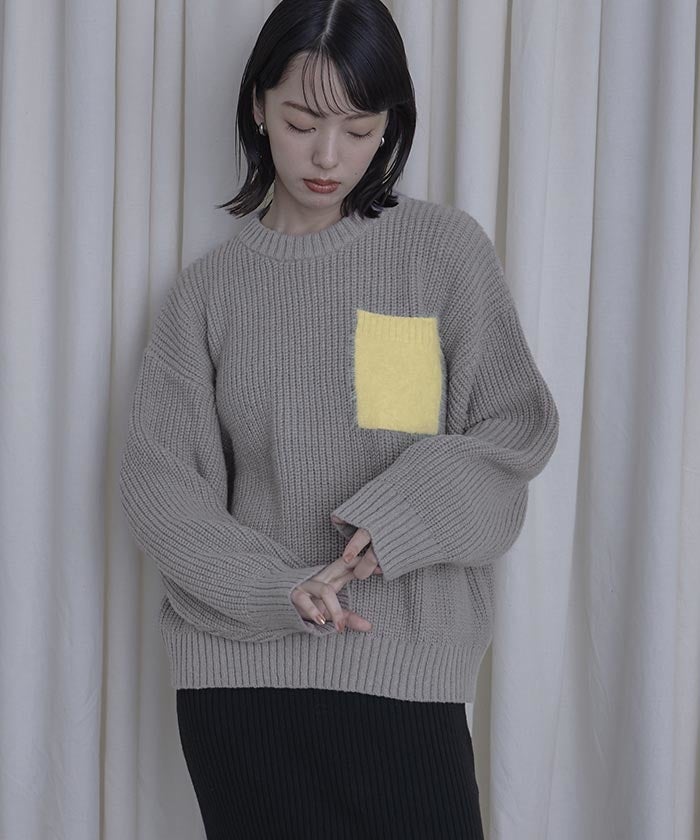 シャギーポケットのアクセントがNICE! 異素材のニットがまた高級感出てて高見えです!
