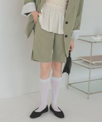 ヘビロテ 買ってから毎日履いてます!! 普通丈の方ですが 良い感じに綺麗めにもカジュアルにも着れて最高!! 秋はブーツと合わせようかなー ゴム万歳!! アラフィフでも着れるハーフパンツにやっと出会えた! -