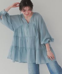 本当は普通の丈のシャツが欲しかったが、好みのものは軒並み売り切れていて、こちらのブルーを購入。この丈はチャレンジやしたことがなかったが、意外と可愛い。ワンピースのインナーとして着るのもあり。 -