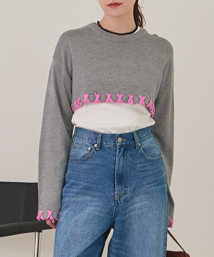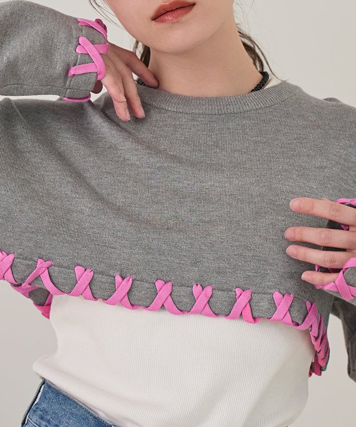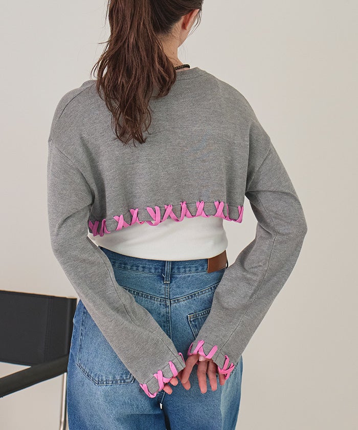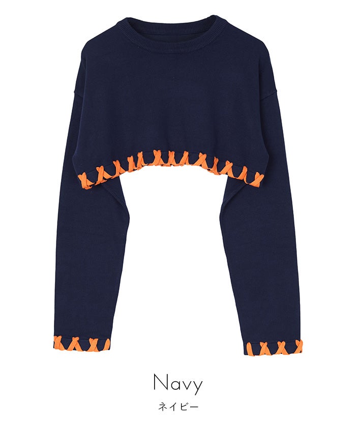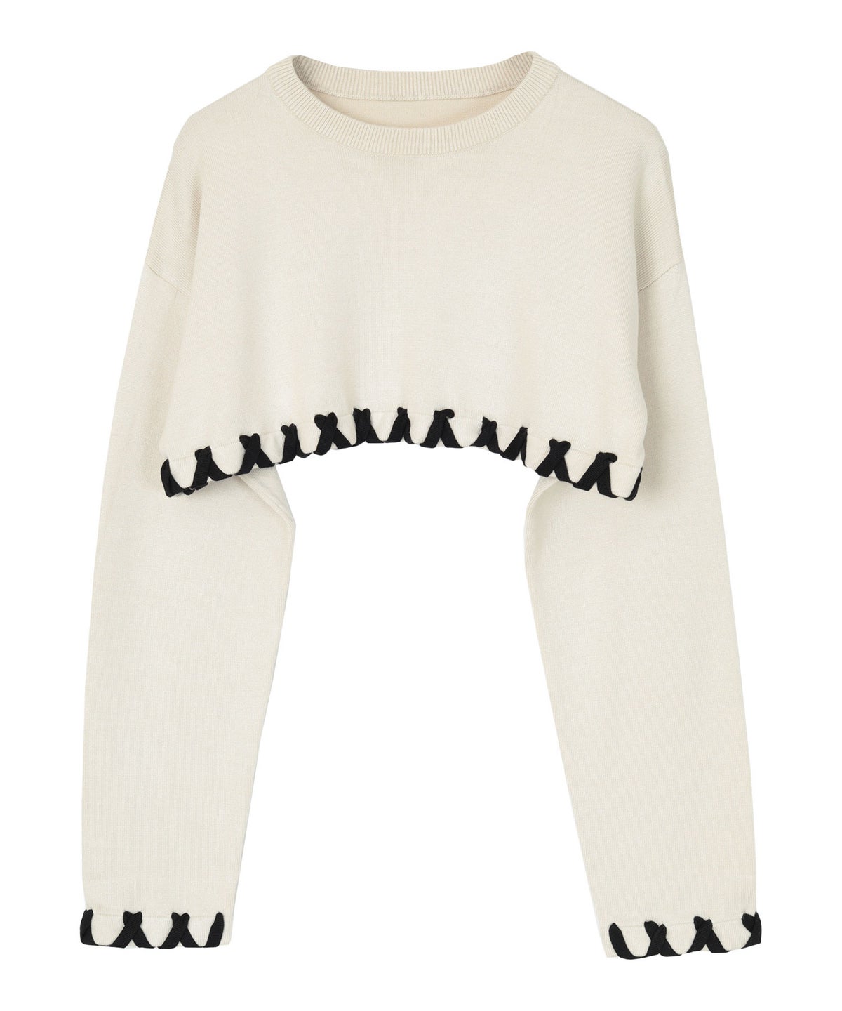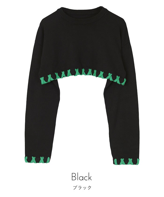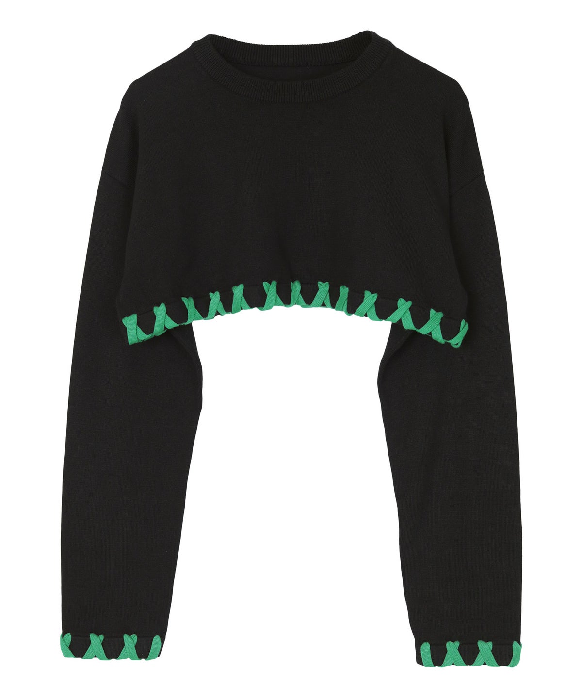 【miette】【期間限定★SALE】 配色ステッチクロップドニットトップス【miette ミエット】