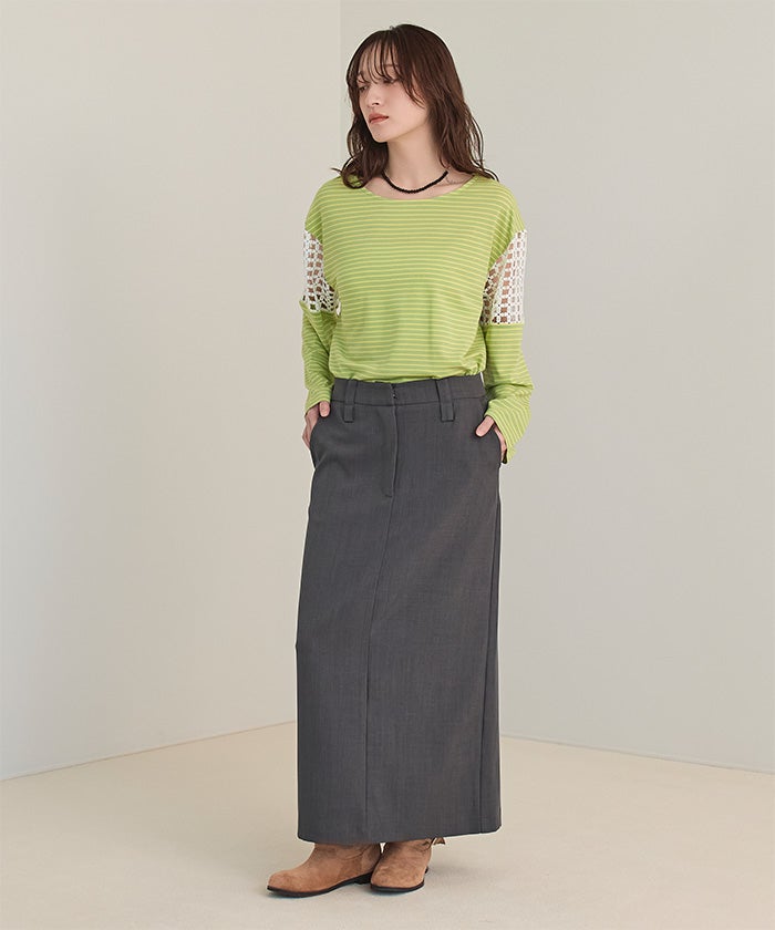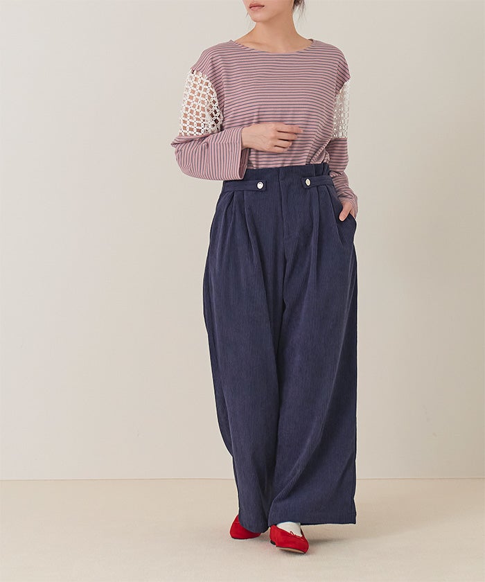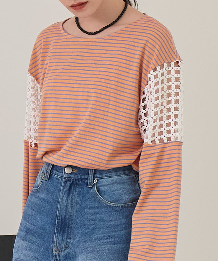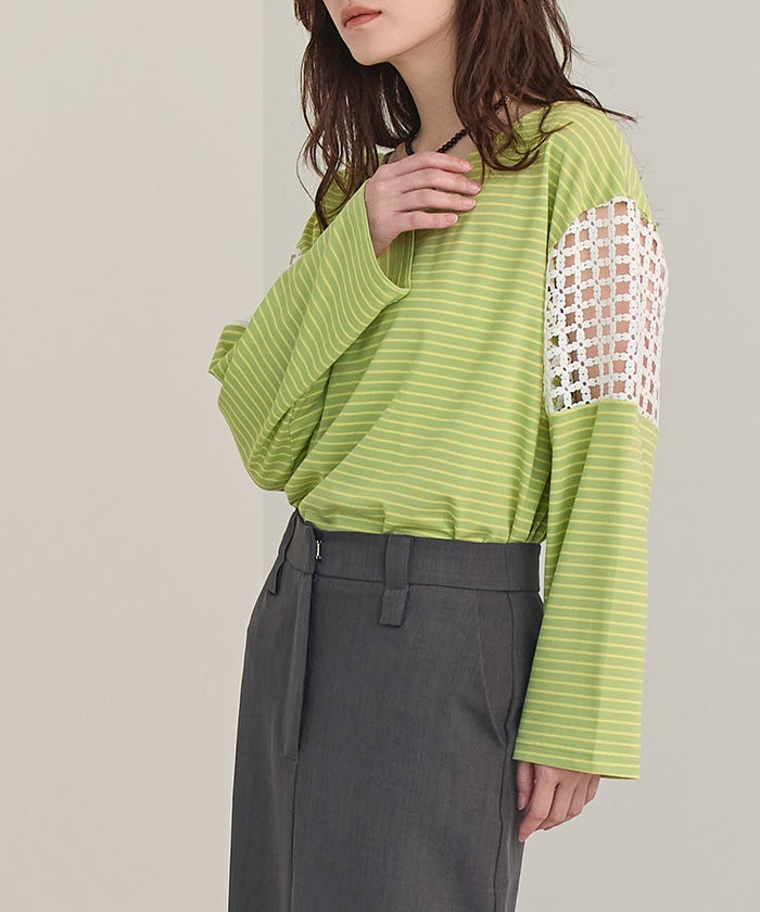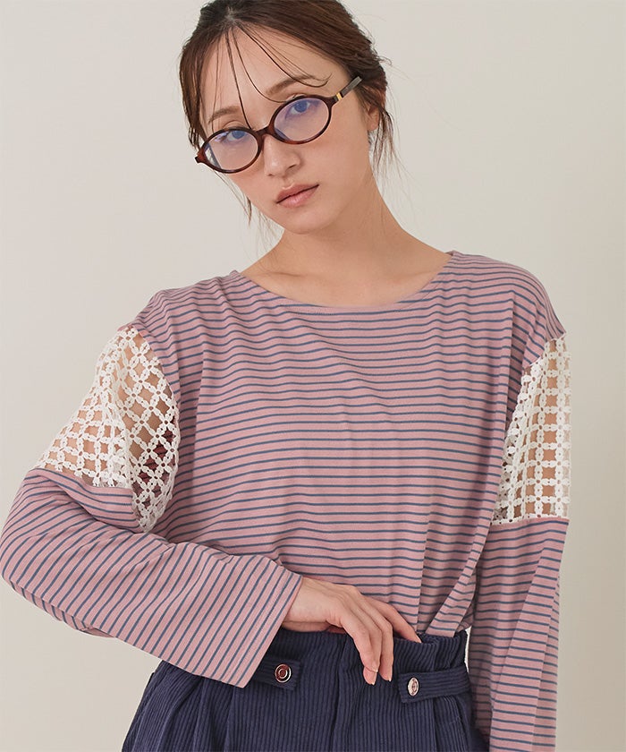 【miette】【期間限定★3000均一】 フラワーレース切替ボーダーロンT【miette ミエット】【メール便可/80】