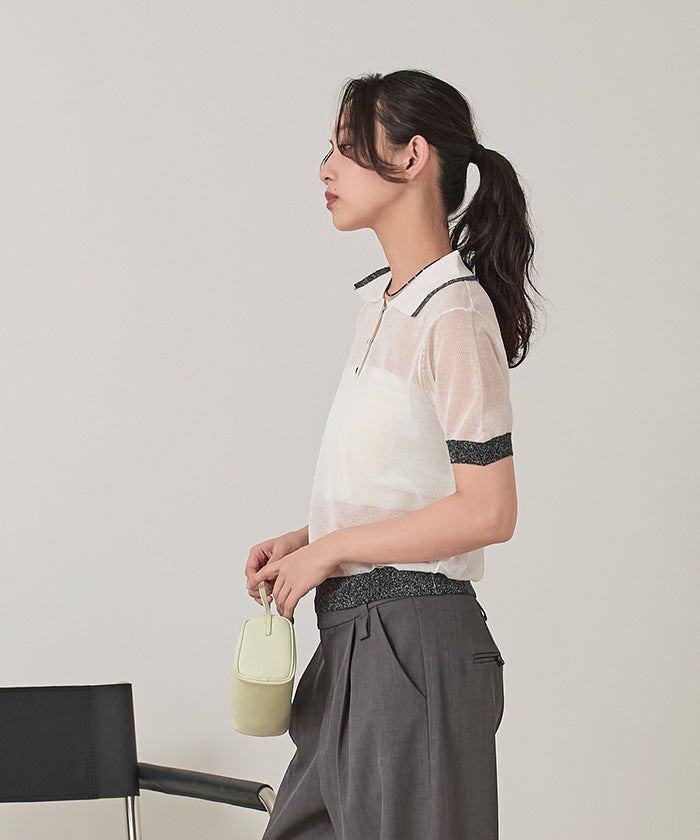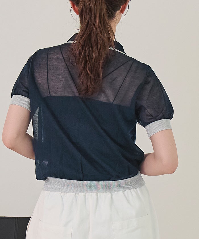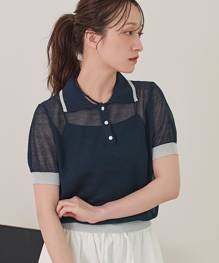 【miette】【期間限定★3000均一】 配色ラインシアー半袖ポロニット【miette ミエット】【メール便可/50】