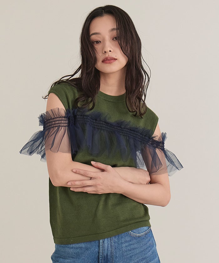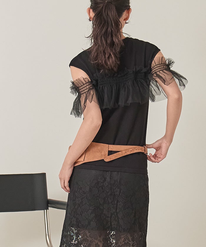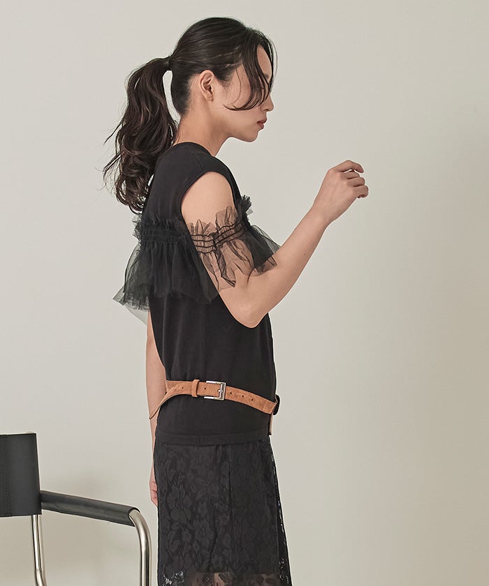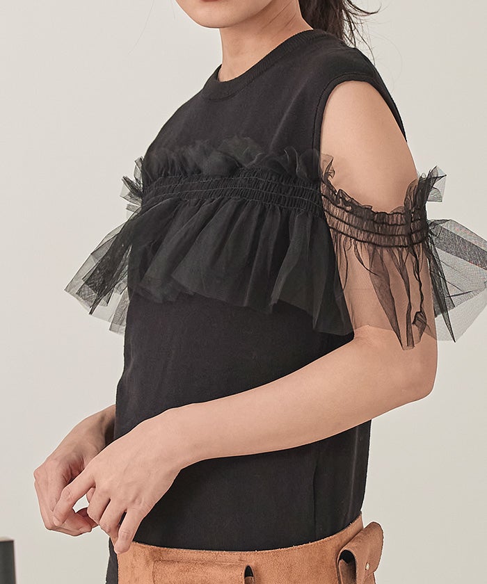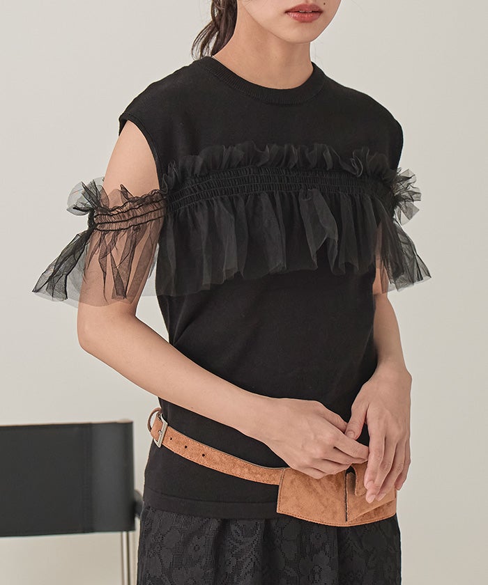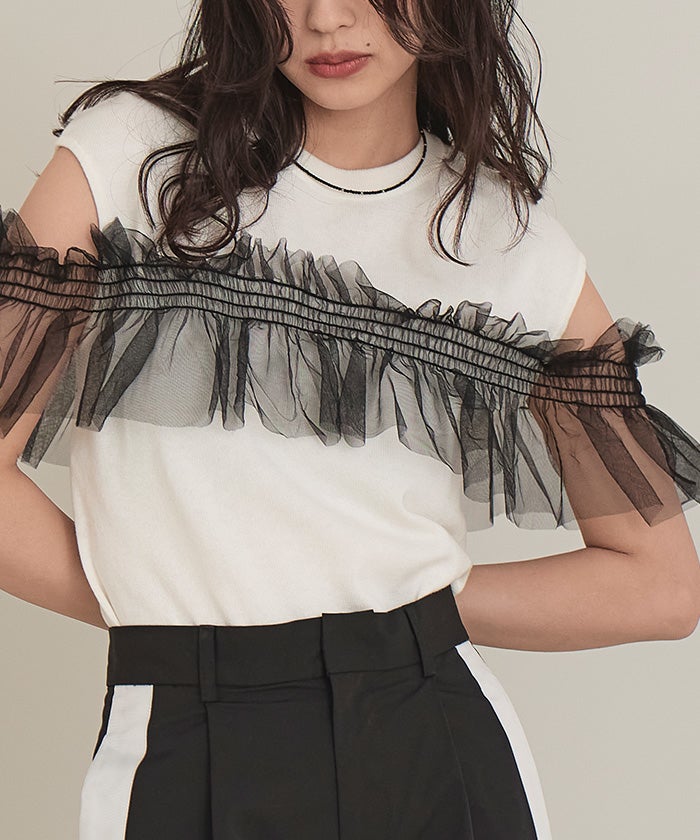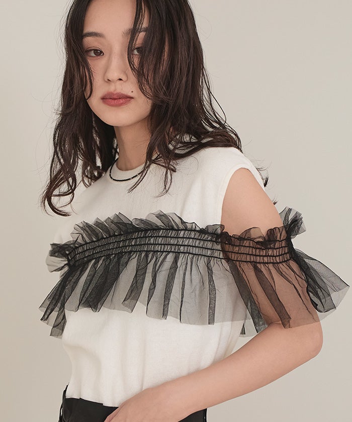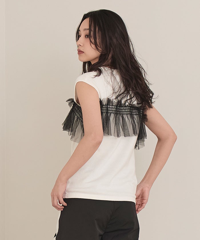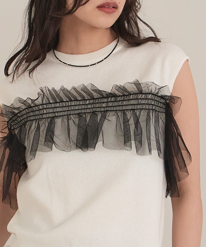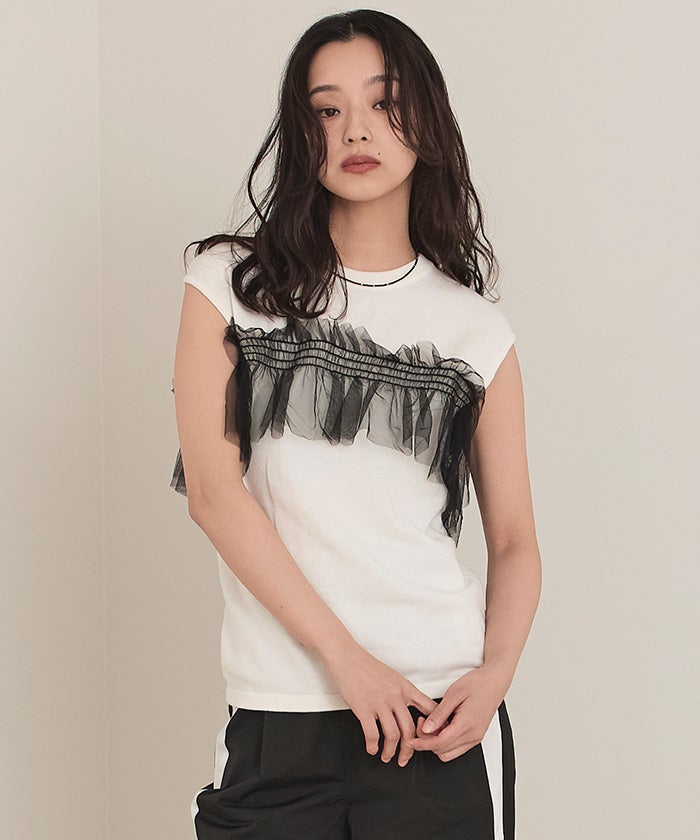 【miette】【期間限定★SALE】 チュールフリルトップス【miette ミエット】【メール便可/100】