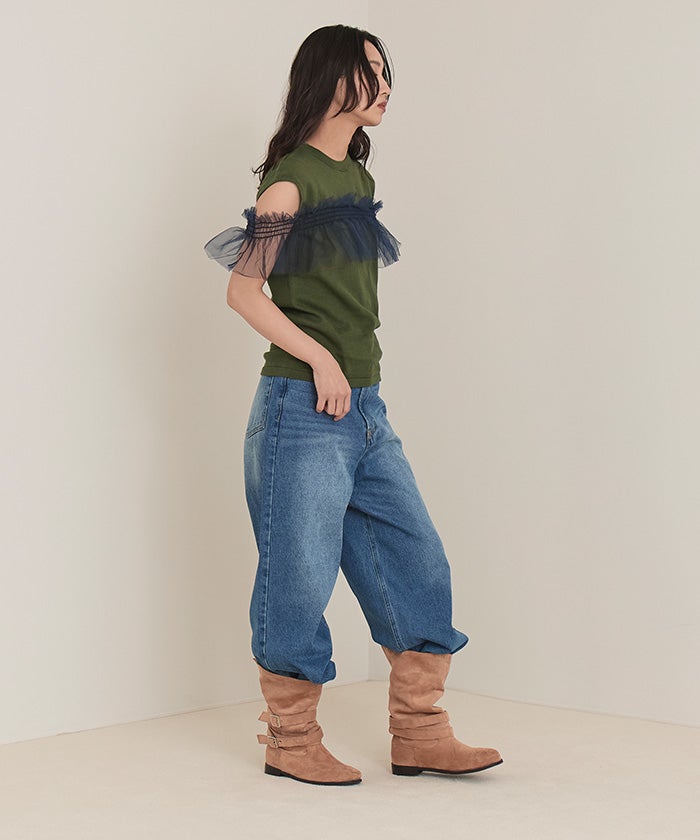 【IGTV】 【titivate】【期間限定★SALE】 ティアードフリルモヘアライクローゲージニットトップス