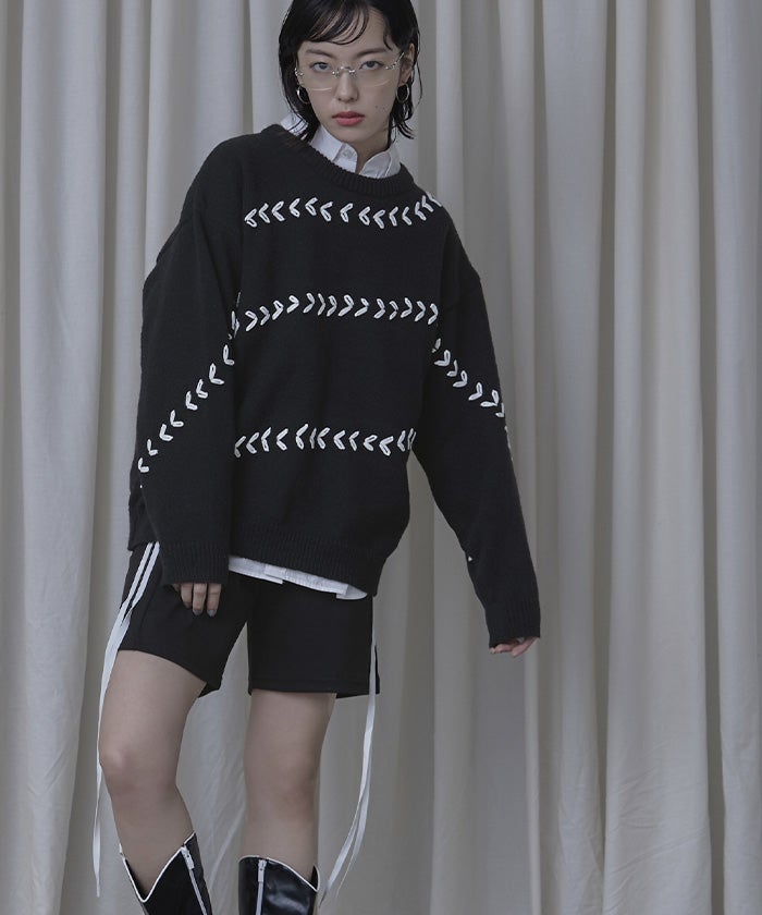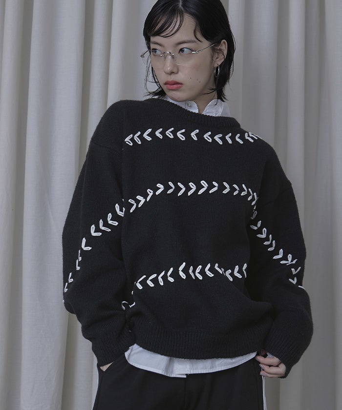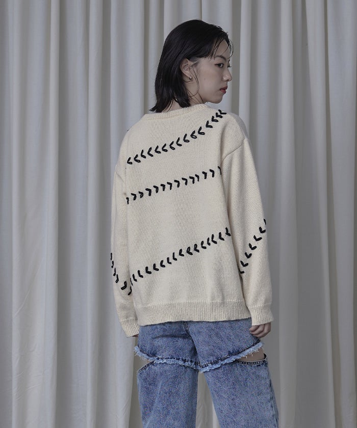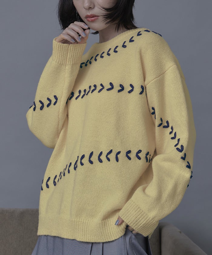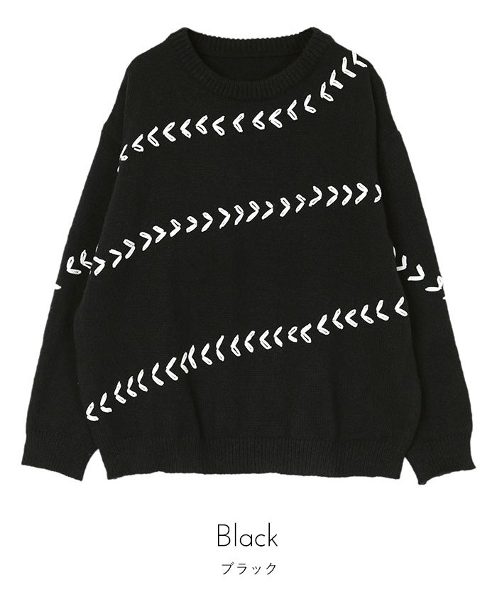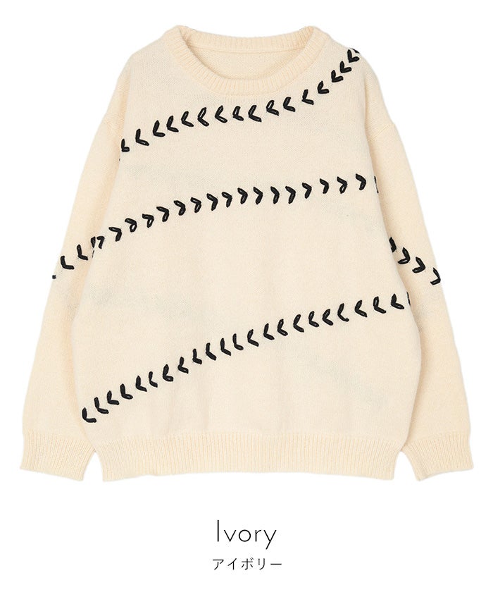【miette】【期間限定★2500均一】 アシンメトリーステッチオーバーサイズニット【miette ミエット】
