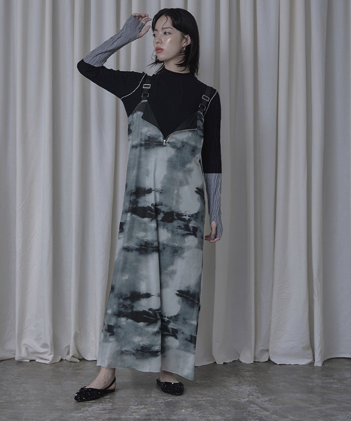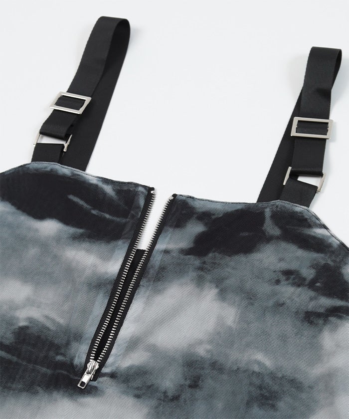 ■【miette】 フロントジッププリントチュールワンピース【miette ミエット】