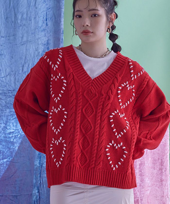 他の画像を見る 【miette】【期間限定★2500均一】 配色ステッチハートケーブルVネックニット【miette ミエット】 通常価格 ¥ 6,919 価格 ¥ 2,500 税込 お気に入りに登録する