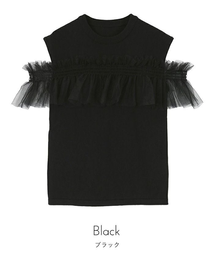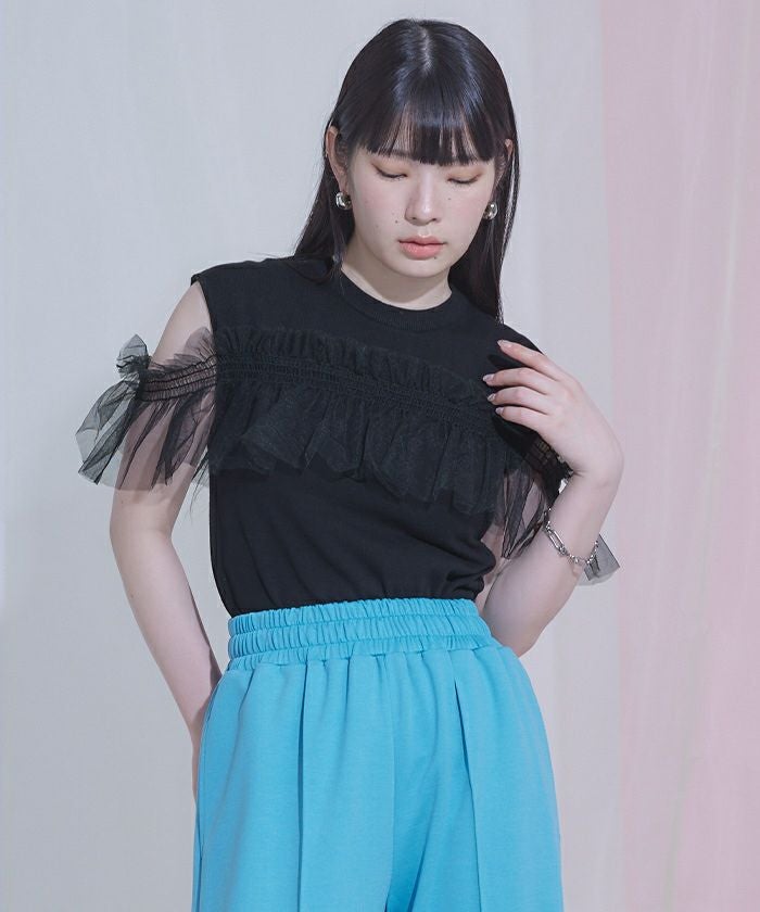 他の画像を見る 【miette】【期間限定★SALE】 チュールフリルトップス【miette ミエット】【メール便可/100】 通常価格 ¥ 5,489 価格 ¥ 3,842 税込 お気に入りに登録する