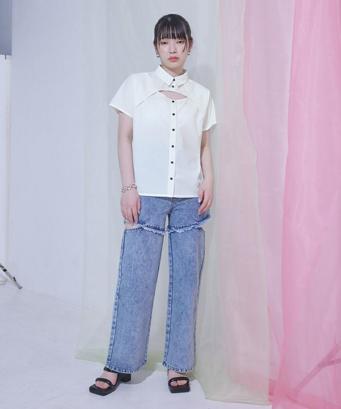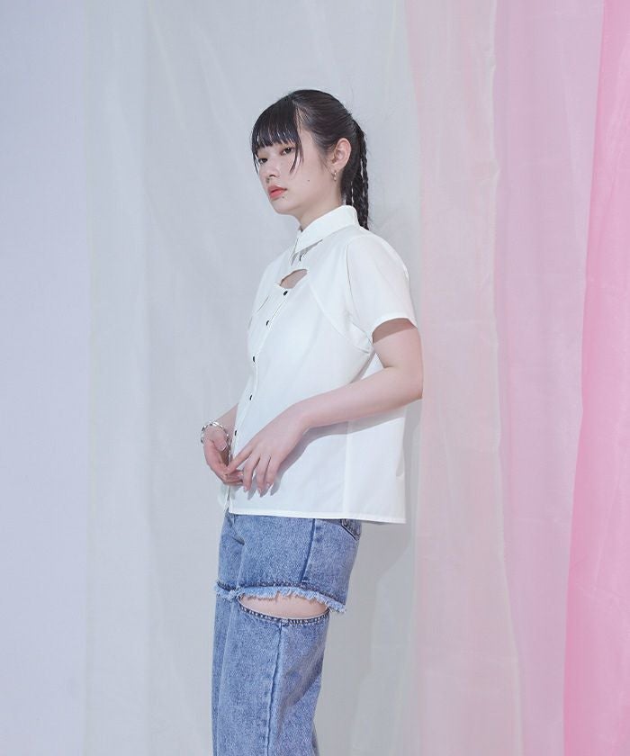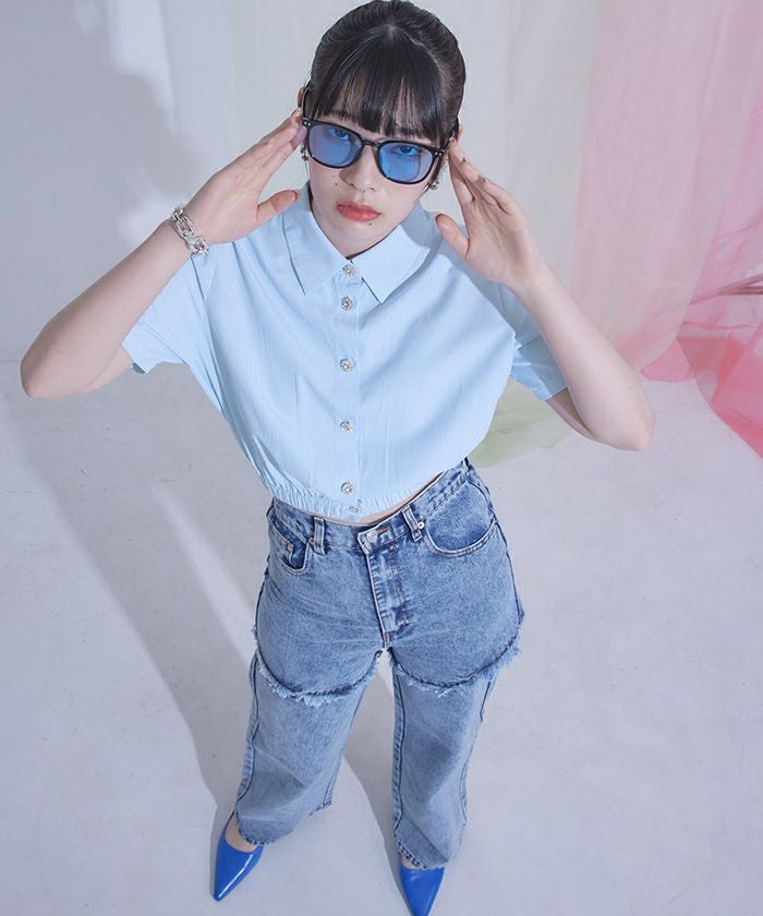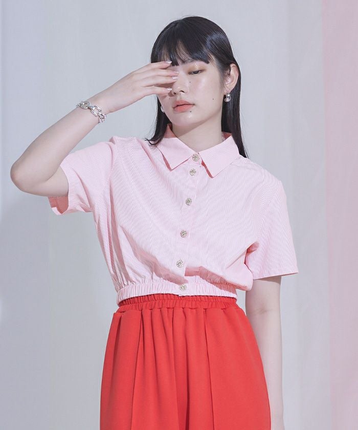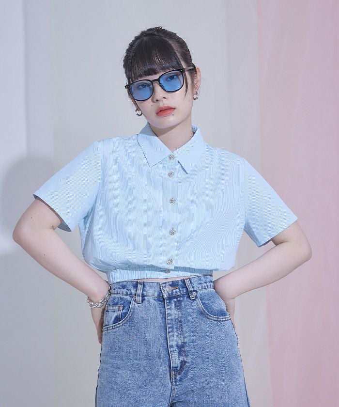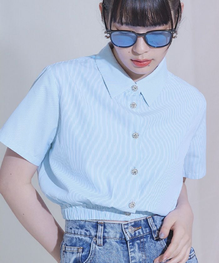 他の画像を見る 【miette】【期間限定★SALE】 ビジューボタンクロップドシャツ【miette ミエット】【メール便可/100】 通常価格 ¥ 5,489 価格 ¥ 2,744 税込 お気に入りに登録する
