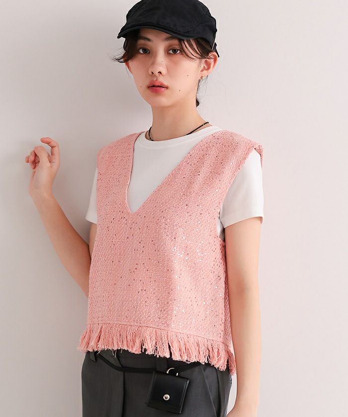 他の画像を見る 【miette】【期間限定★SALE】 スパンコールツイードフリンジショートベスト【miette ミエット】【メール便可/90】 通常価格 ¥ 7,689 価格 ¥ 3,075 税込 お気に入りに登録する
