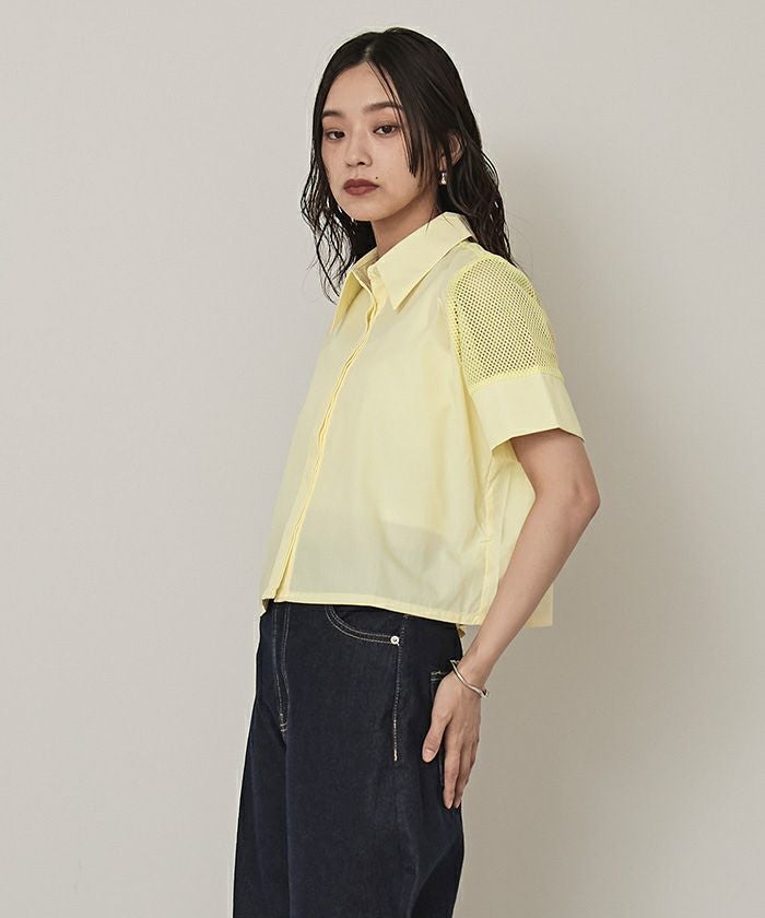 他の画像を見る 【miette】【期間限定★SALE】 メッシュ切替半袖ショートシャツ【miette ミエット】【メール便可/100】 通常価格 ¥ 5,929 価格 ¥ 2,964 税込 お気に入りに登録する