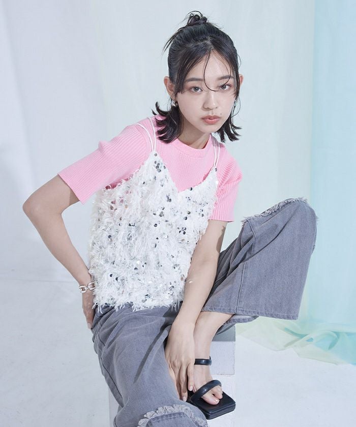 他の画像を見る 【miette】【期間限定★SALE】 キラキラフリンジ半袖トップス【miette ミエット】【メール便可/100】 通常価格 ¥ 5,489 価格 ¥ 3,842 税込 お気に入りに登録する