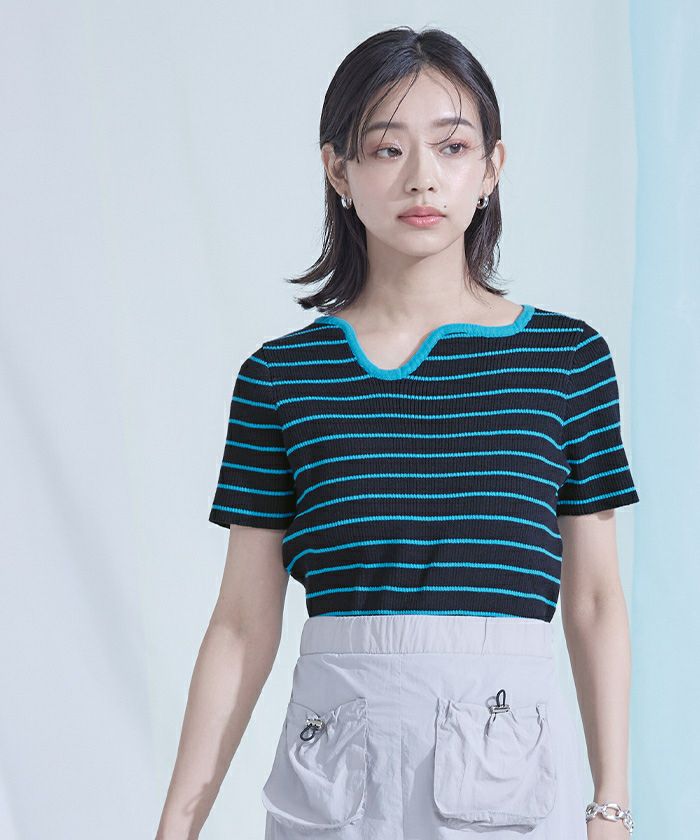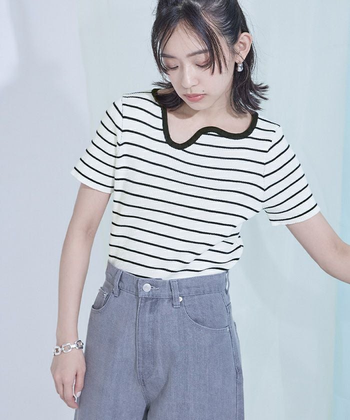 他の画像を見る 【miette】【期間限定★SALE】 ウェーブネックラインボーダー半袖トップス【miette ミエット】【メール便可/100】 通常価格 ¥ 5,489 価格 ¥ 3,842 税込 お気に入りに登録する