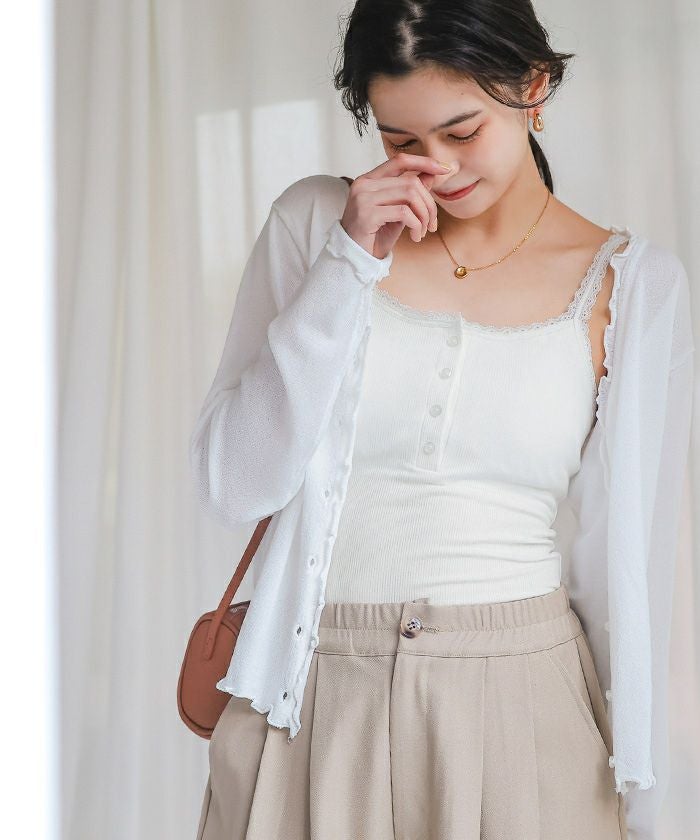他の画像を見る ■【miette】【期間限定★SALE】 襟付きレイヤード風シアーカーディガン【miette ミエット】【メール便可/100】 通常価格 ¥ 6,919 価格 ¥ 5,880 税込 お気に入りに登録する