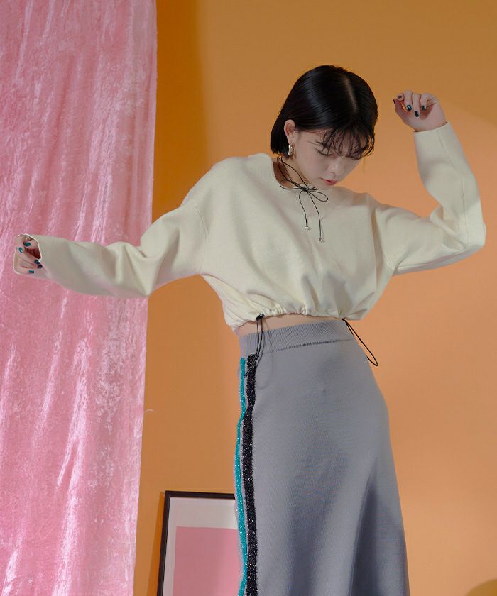他の画像を見る 【miette】【期間限定★SALE】 ウェーブネックライン裾ドロストショートニット【miette ミエット】 通常価格 ¥ 6,589 価格 ¥ 2,635 税込 お気に入りに登録する