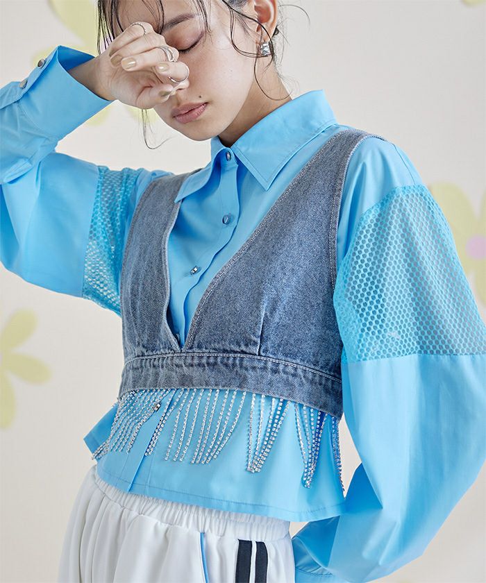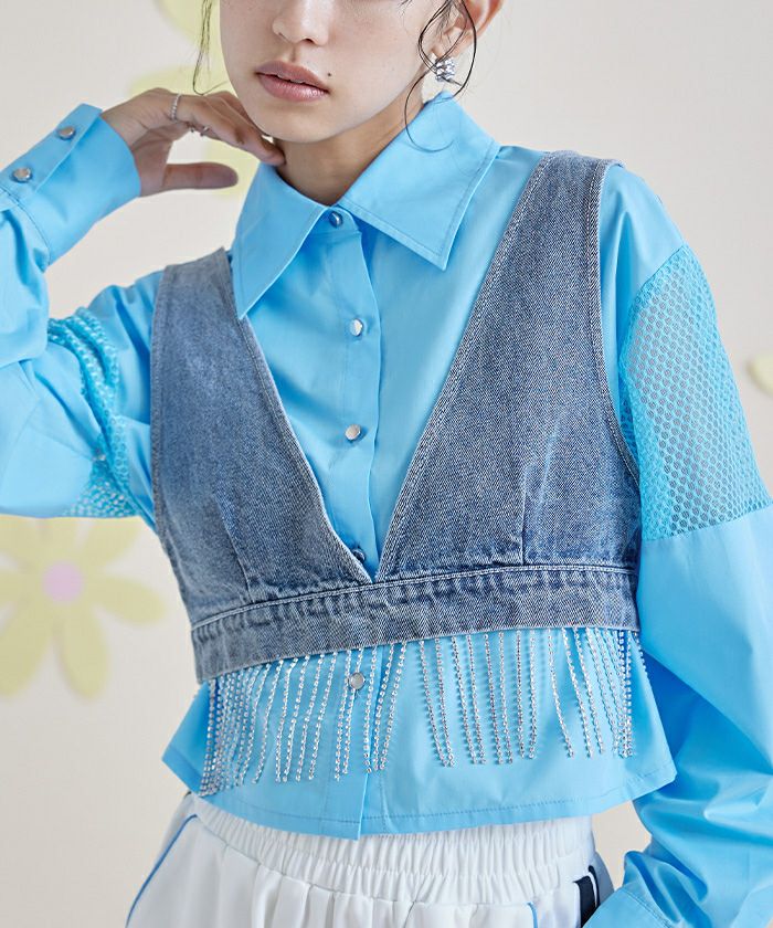 他の画像を見る 【miette】【期間限定★SALE】 メッシュ切替クロップドシャツ【miette ミエット】【メール便可/100】 通常価格 ¥ 6,589 価格 ¥ 4,612 税込 お気に入りに登録する