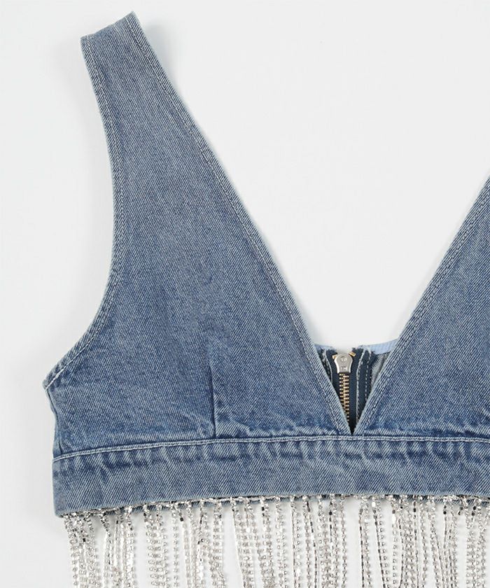 他の画像を見る 【miette】【期間限定★SALE】 ビジューフリンジデニムビスチェ【miette ミエット】【メール便可/50】 通常価格 ¥ 7,689 価格 ¥ 4,613 税込 お気に入りに登録する