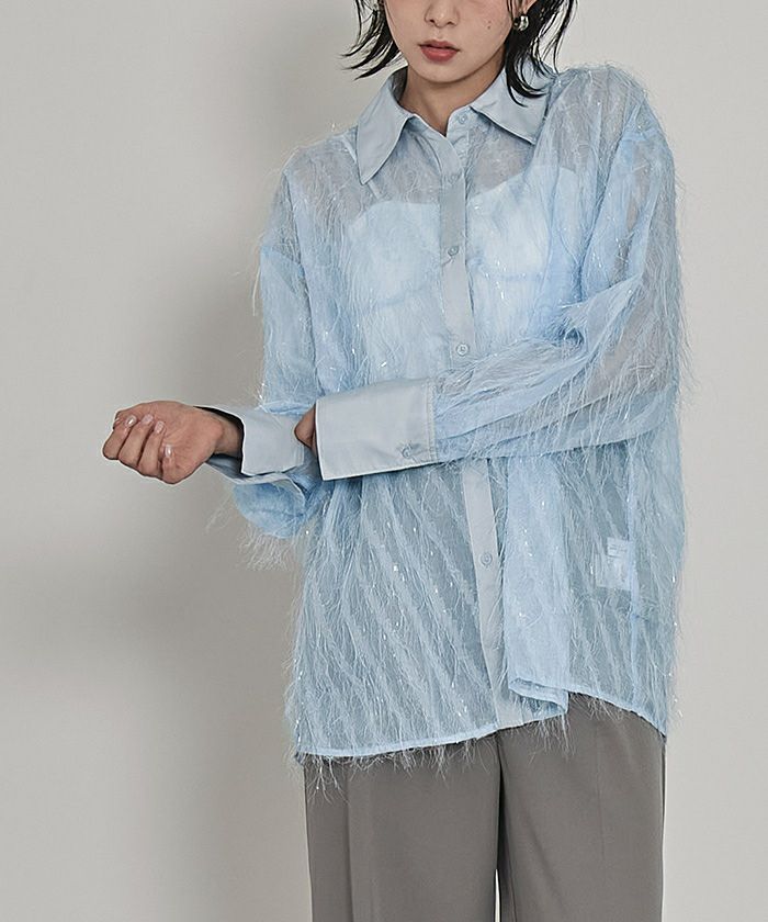 他の画像を見る 【miette】【期間限定★SALE】 2wayキラキラフリンジシアーシャツ【miette ミエット】【メール便可/100】 通常価格 ¥ 6,589 価格 ¥ 4,612 税込 お気に入りに登録する
