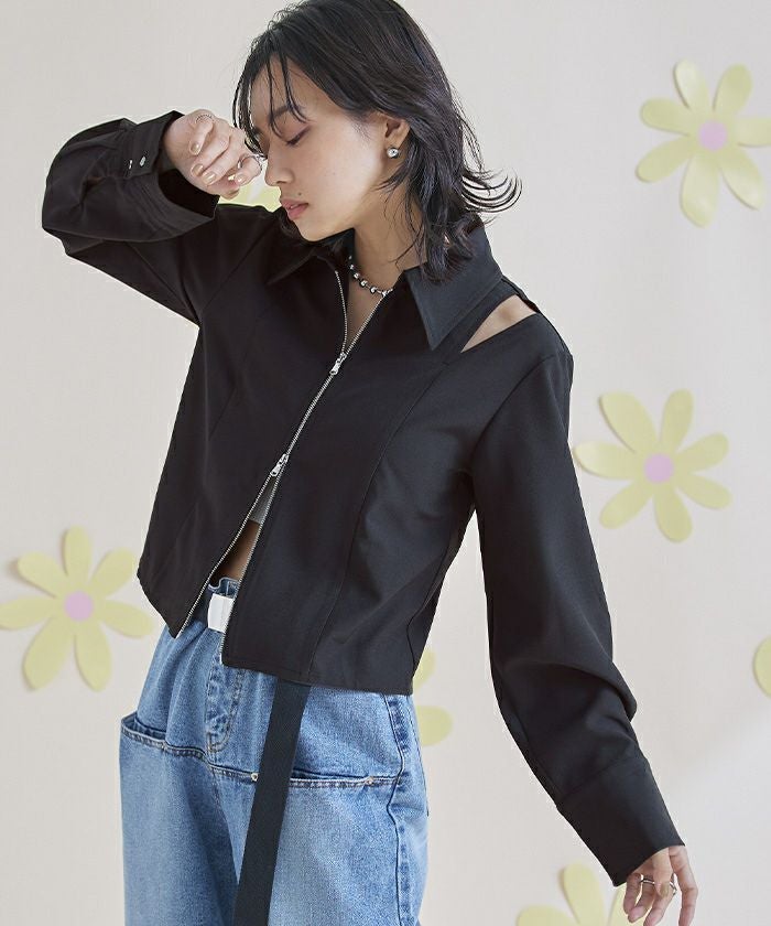 他の画像を見る 【miette】【期間限定★SALE】 ショルダーカットアウトフロントジップシャツ【miette ミエット】【メール便可/100】 通常価格 ¥ 6,589 価格 ¥ 3,953 税込 お気に入りに登録する